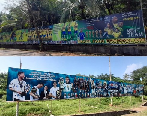 ബ്രസീലിനും അര്ജന്റീനക്കും കൂറ്റൻ ഫ്ളക്സ് ബോർഡുകൾ സ്ഥാപിച്ചു എടപ്പലത്തെ ഫാൻസുകാരുടെ ആവേശം