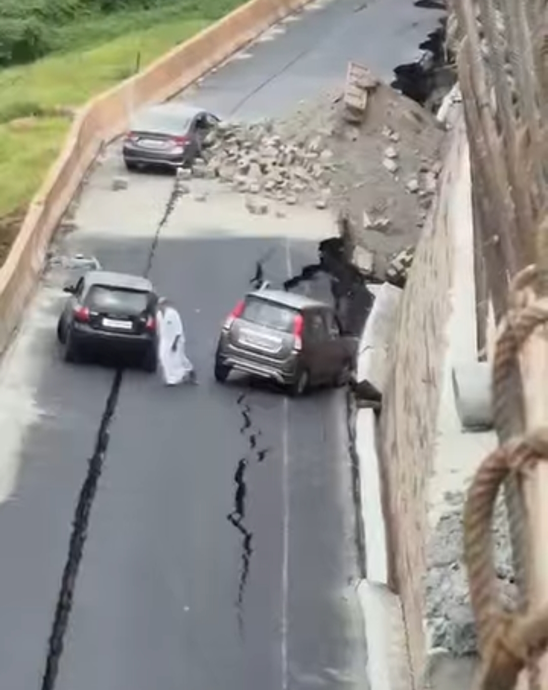 കൂരിയാട് ദേശീയപാതയിൽ പുതിയതായി നിർമ്മിച്ച റോഡ് ഇടിഞ്ഞു