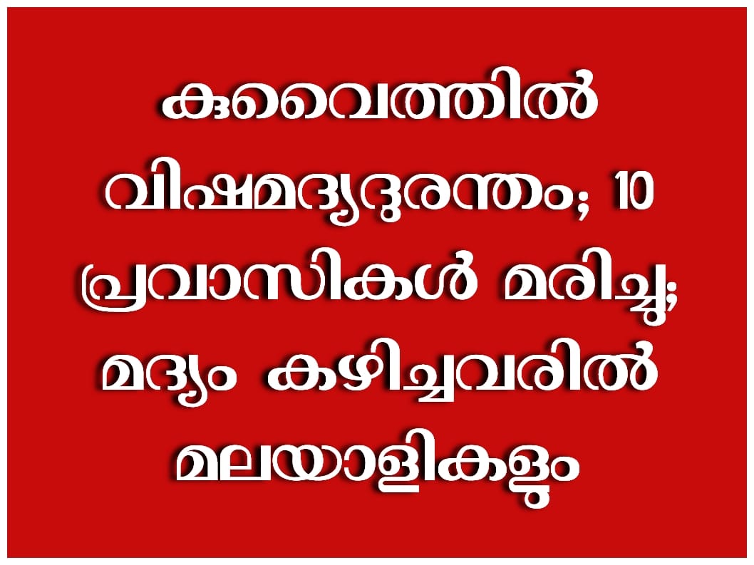 കുവൈത്തില് വിഷമദ്യദുരന്തം; 10 പ്രവാസികള് മരിച്ചു; മദ്യം കഴിച്ചവരില് മലയാളികളും