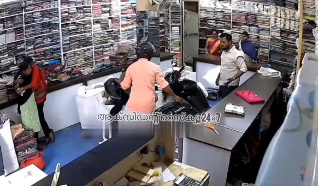 കുട്ടി ആക്‌സിലേറ്ററിൽ കൈവെച്ചു; തുണിക്കടയിലേക്ക് ഇടിച്ചുകയറി സ്‌കൂട്ടർ, അപകടം