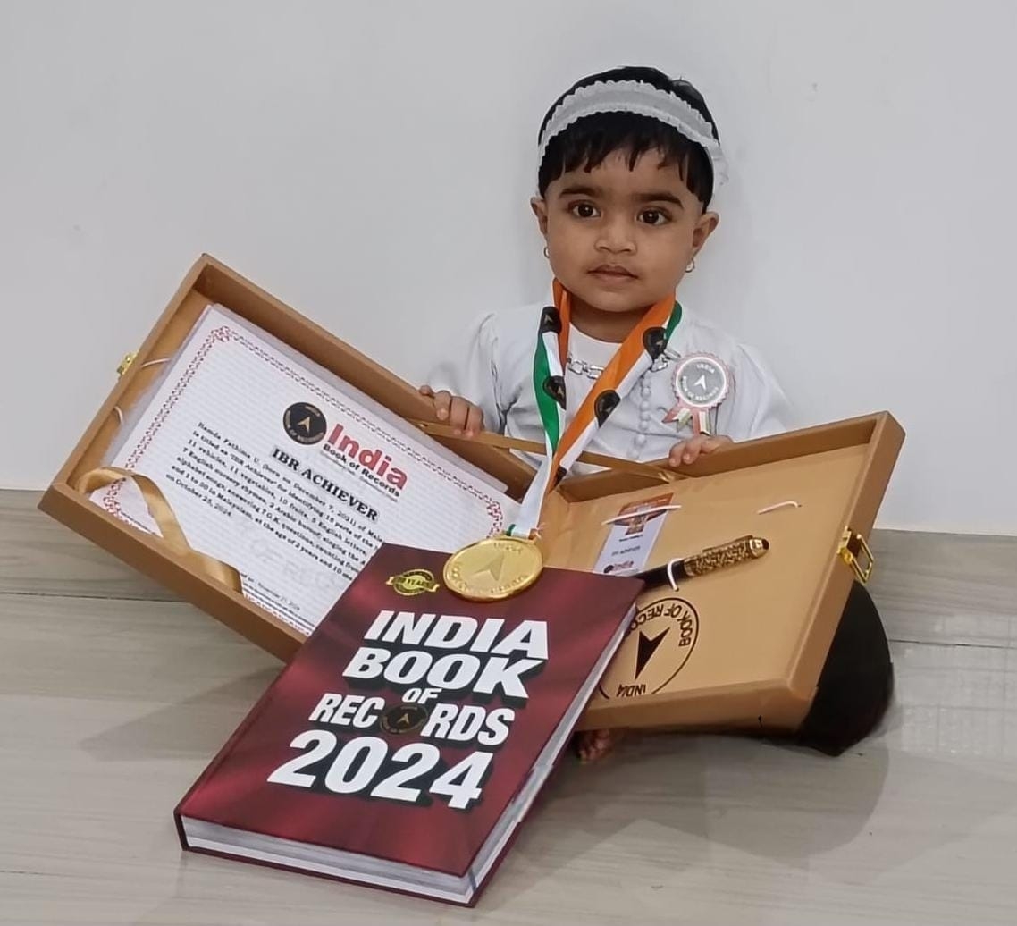 ഇന്ത്യാ ബുക് ഓഫ് റെക്കോർഡ്സിൽ ഇടം നേടി മൂന്നിയൂരിലെ മൂന്ന് വയസ്സുകാരി ഹംദാ ഫാത്വിമ.