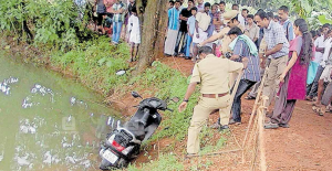 വെള്ളക്കെട്ടിലേക്ക് മറിച്ചിട്ട സ്കൂട്ടർ വാഹന വകുപ്പ് പരിശോധിക്കുന്നു